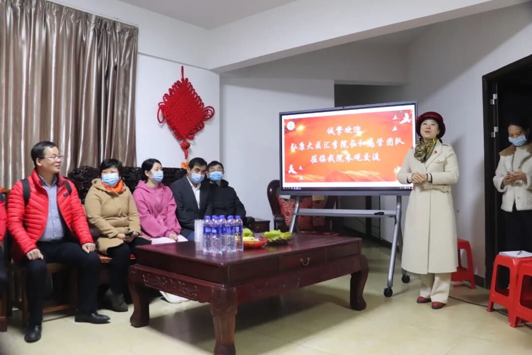 2月9日,弘康大医汇名医诊疗中心李英副院长、熊剑副院长、影像诊断中心李兴吾主任、健康管理(体检)中心薛树林主任、护理部冯春花主任、信息科黄春雄主任等来我院交流。我院市场总监薛总监热情接待来宾,并携各科室、行政负责人参与本次交流。