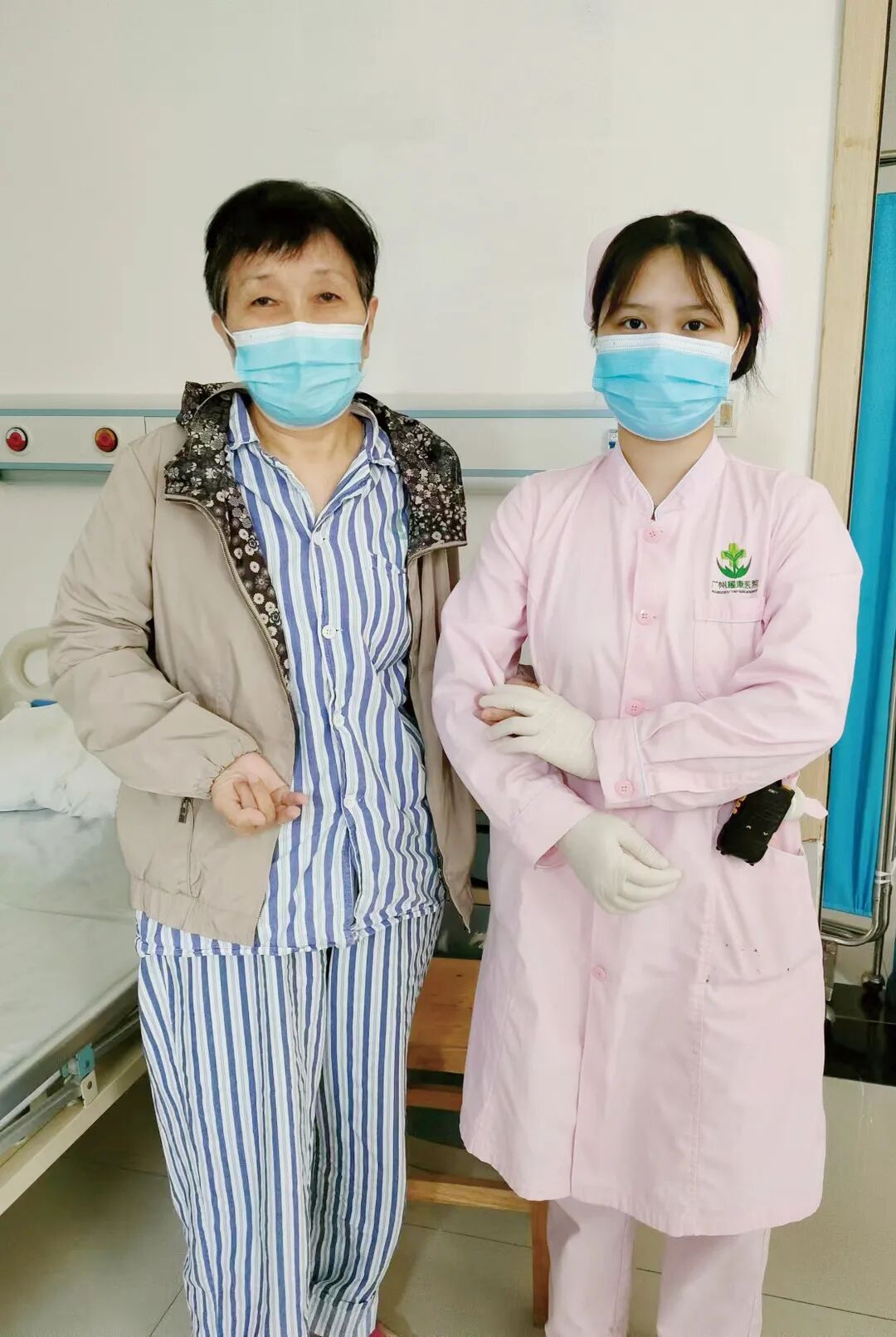 廖女士和护士合影